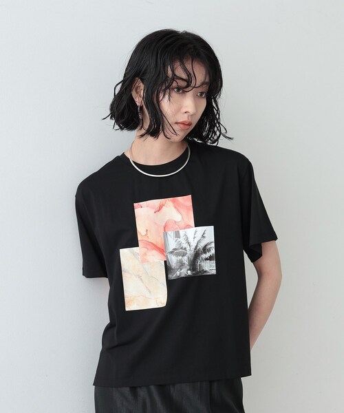 Design Point 胸元のアートライクに構成したプリントがポイントの半袖Tシャツ。 今季のテーマ『ボヘミアン』を想像させるフォトとアート感をアレンジしたインパクトのあるプリントです。 程よいゆとり感のあるサイジングで着心地◎。 Styling Point タイトシルエットスカートやタックパンツにINスタイルで、綺麗めカジュアルコーディネートがおすすめです。 Fabric Point レーヨンの滑らかなタッチとコットンのナチュラル感がミックスされた、肌触り良く着心地の良いソフト感を持たせた素材。 ※照明の関係により、実際よりも色味が違って見える場合があります。また、パソコン・スマートフォンなどの環境により、若干製品と画像のカラーが異なる場合もございます。 店舗へのお問い合わせ商品番号:523-18036 ●製品寸法: 38:着丈前60cm 着丈後64cm B104cm 袖丈20cm 肩幅47cm 備考: