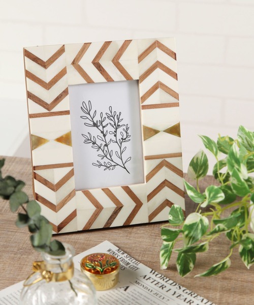 ウッドとボーンを組み合わせた大人っぽいフォトフレーム。 縦でも横でも、置きでも壁掛けでも飾っていただけます。 裏面にはstudio CLIPロゴの焼印入り。 フォトフレームとしてはもちろん、壁掛けアートとしても飾っていただけるように、アートな台紙を使用しました。