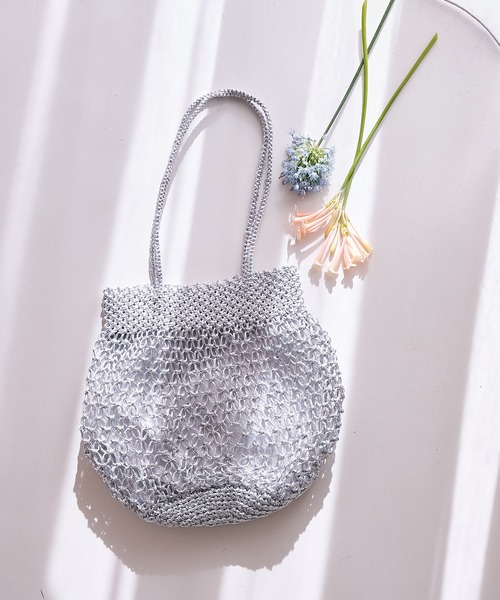 普段使いにぴったりなサイズ感! 《POINT》 ・暑い季節の活躍するマクラメ編みバッグ。 ・バケツ型の丸みのあるシルエットで荷物が入れやすい。 ・500mlペットボトルや長財布もすっぽり収まります。 ・開口部分広く、荷物の出し入れが楽々。 ・透け感のあるメッシュ地の裏地付き。 ・持ち手部分は手持ちと肩掛けが出来る利便性のある長さ。 ※商品画像は、光の照射やパソコンなどの閲覧環境により、実際の色味と異なって見える場合がございます。予めご了承ください。 ※商品の色味の目安は、商品単体の画像をご参照ください。