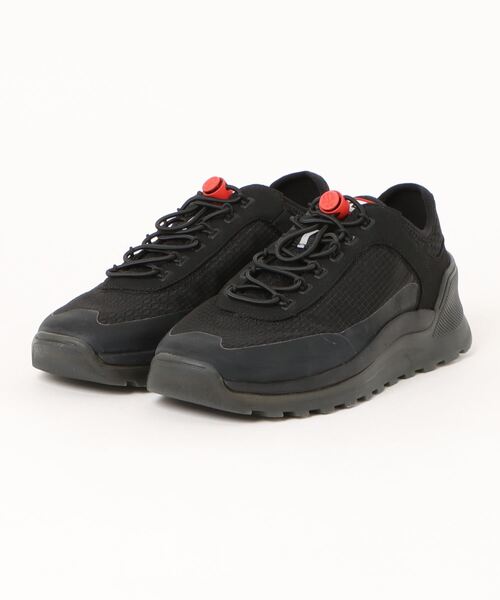 ------------------------------ レディーストラベルスニーカー ------------------------------ カジュアルなシティトレーナーにスポーツテイストをプラスしたハンターのトラベルトレーナーは、柔らかくで通気性に優れた100%リサイクルナイロンとメッシュの2層構造。 軽量で衝撃吸収性に優れたリサイクルEVAミッドソールとリサイクルオーソライトの中敷きが優れた快適性と柔軟な履き心地を実現し、耐久性に優れたFSC認証ラバーアウトソールがあらゆる路面に対応するグリップ力を発揮します。 超軽量のTPUフォクシングラインが、雨からの保護をさらに強化します。 ・ビーガン認定 ・リサイクルアッパー、ライニング、インソール ・FSC認証の天然ゴムで作られたアウトソール ・通気性を高めるメッシュアッパー ・リサイクルEVA衝撃吸収ミッドソール ・快適さを高める緩やかに曲線を描くフットベッド ・保護ヒールカウンター ・着用がスムーズなプルタブ ・耐水性を高める下部のTPUフォクシング ・コンパクトにパッキングできる専用のエラスティックストラップ カラー展開 ブラック サイズ展開 3(22.0cm) / 4(23.0cm) / 5(24.0cm) / 6(25.0cm) ヒール高:約3.5cm 素材 アッパー:リサイクルリップストップナイロン、リサイクルポリエステルメッシュ / ライニング:ポストコンシューマーリサイクルポリエステル / アウトソール:FSC認証農園の天然ゴム HUNTER / ハンター 1856年創業のハンターは進歩的な英国老舗ブランド。 機能性とファッショナブルなカラーやデザインで人気。 女王エリザベス2世およびエディンバラ公より最高品質の証しでもある英国王室のワラントを与えられ、既に30年以上も英国王室の御用達ブーツとされている。 ブーツ本体を丸ごと液体天然ゴムに浸けて形成しているため、ゴムの継ぎ目がなく防水性が高い。 また、日本でいう長靴とは異なり、脚の形にフィットしたデザインが特徴である。 現在ではファッション性の高いブーツも数多く手がけており、おしゃれなレインブーツとしてもその人気を集めている。 ケイト・モスやニコール・リッチー、アンジェリーナ・ジョリーといったハリウッドセレブの愛用者も多いことで知られている。 Attention 靴のサイズは目安になります。 履き方・足型等、個人差がございますので、あくまでも参考程度にお考え下さいませ。 商品のお届けの際にシューズ箱にへこみ等が生じる場合がございます。予めご了承下さい。 商品によっては箱が無い場合が御座いますので予めご了承下さい。 お使いのモニターの環境により実物の商品と見た目の色に多少違いがある場合がございます。 お気に入り登録機能の使い方 ▼商品のお気に入り登録 完売カラーの再入荷通知や、ラスト1点、セールの通知をお知らせいたします。 ▼ブランドお気に入り登録 新商品や再入荷・クーポン配布など、ブランドの情報を受け取ることができます。