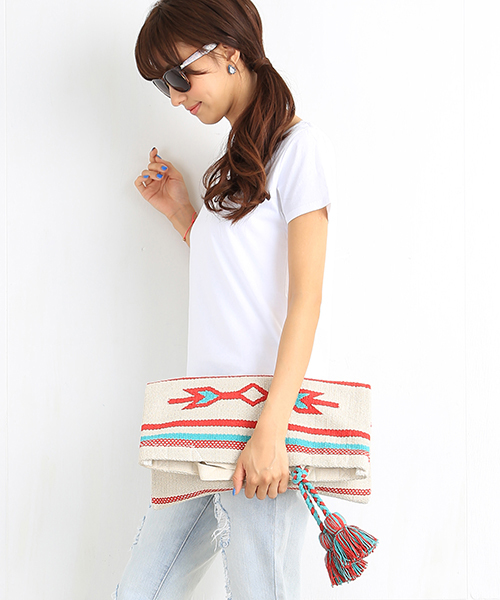 春夏らしい鮮やかなカラー、素材感が魅力的なLilas Campbellのクラッチバッグが入荷しました。 クラッチバッグと言っても、貴重品だけでなくいつものバッグの中身もほとんど入るサイズ感。2WAY仕様で使い勝手に優れたデザインは、デイリーからリゾートスタイルまで幅広く活躍してくれる一品です。 Lilas Campbell / リラキャンベル 自分のスタイルを持って人生を楽しんでいる女性をターゲットにした日本のバッグブランド。 海や太陽など自然からのインスピレーションをデザインソースに、キャッチーでオリジナリティ溢れるBAGを提案しています。インド製ならではの風合いも魅力です。 店舗へお問い合わせの際は下記品番をお伝えください。 品番:93-61-0070-629