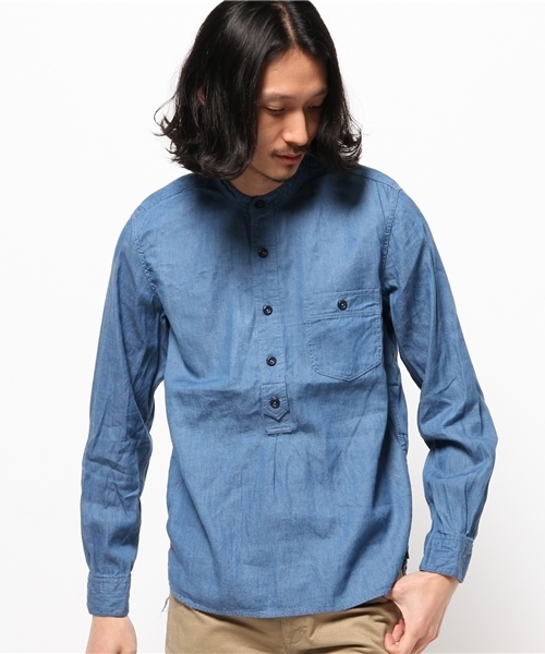 【Ciaopanic】 4.5ozデニムプルオーバーシャツ 気負わずサラリと着こなしたいデニムが魅力のプルオーバーシャツです。胸元のポケットや、裾のサイドマチなど色々こだわりを詰め込みました。1枚やジャケットの中に合わしてもポイントなるシャツです!!