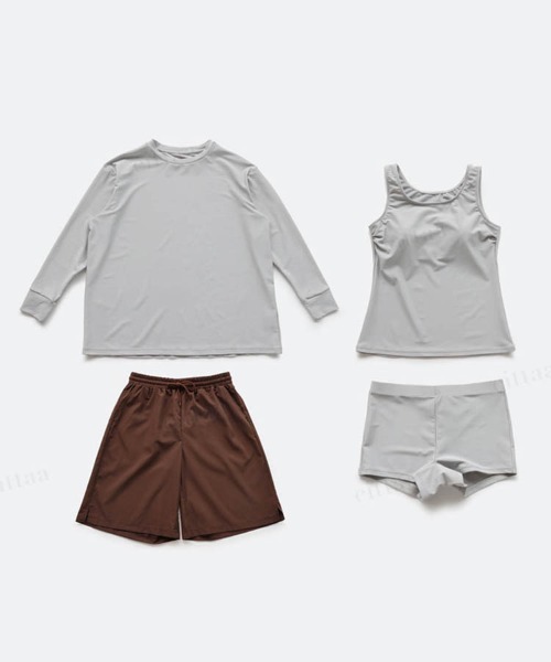 タンキニ×長袖トップス×ハーフパンツの4点セット水着 タンキニだけ、トップスあり、ボトムスありなど 組み合わせ次第で同じ水着でも様々な着こなしが楽しめます! タンキニのショーツはボクサータイプでスポーティーな着こなしが可愛い 肌の露出も少なく安定感があるので ビーチやプールでアクティブに過ごしたい方にもオススメです◎ セットのトップスとパンツはゆったりと着られるオーバーサイズ。 ジェンダーレスな着こなしが今っぽい おしゃれ見えしつつウエストやヒップ、二の腕など 気になる部分をカバーしてくれるのも嬉しい! UPF50プラス紫外線防止の素材を使用しているので日焼け対策にも◎ また通気性や速乾性にも優れているのでジムやヨガなど普段使いもできちゃいます ●detail ・タンキニ+長袖トップス+ボトムの4点セット ・UPF50プラス紫外線防止素材 ・通気性や速乾性に優れた生地 ・ワイヤーなし ・パットあり ・パットポケットあり ・パンツはウエストゴム・調整紐つき ・サイドポケット付き ※撮影時のライティング、ご覧になっているスマートフォンやPC環境などにより 実際の商品と色が異なって見える場合がございます。 ※サイズは商品によって若干の誤差がある場合がございます。 予めご了承くださいませ。 ★【Dalfwin ダールフィン】 ワクワクするような最新 韓国ファッションを展開。 オーバーサイズスウェットやフーディー、セットアップ、Tシャツなどカジュアルアイテムを韓国よりセレクト。 ユニセックスITEM多数。ペアコーデも楽しめます。 ================================= ●お気に入り登録●でいつでもチェック! ▶お気に入り登録は、ハートマークをクリックでOK 完売カラーの再入荷通知、在庫ラスト1点の通知、セールの通知を受け取ることができます。 ▶ブランドのお気に入り登録 新商品がUPされたり売り切れ商品が再入荷したときなど、お得な情報を受け取ることができます。 =================================