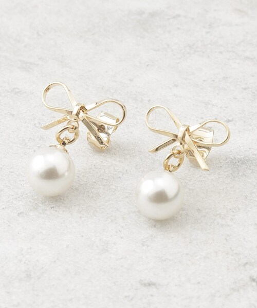 リボンがキュートなピアス【デザイン】小さめのリボンとフェイクパールを組み合わせた可憐なデザイン。コーディネートにトレンド感をプラスしてくれるアイテムです。※照明の関係により、実際よりも色味が違って見える場合があります。また、パソコン・スマートフォンなどの環境により、若干製品と画像のカラーが異なる場合もございます。店舗へのお問い合わせ商品番号:C71-39501●製品寸法:00:全長2cm モチーフ直径0.8cm備考: