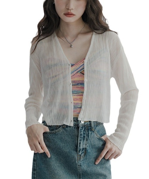 【 B'day / ビーデー 】UVカットショート丈 シアーカーディガン カーディガン レディース 夏 春 薄手 接触冷感 ニット UVカット 透け感 透け 冷房対策 サマー カーデ ニットカーデ 冷感カーディガン サマーカーディガン 薄ニット 長袖 トップス 羽織り 軽量 洗える Vネック 涼しい ボレロ 20代 30代 40代 50代 通勤 オフィス お出かけ