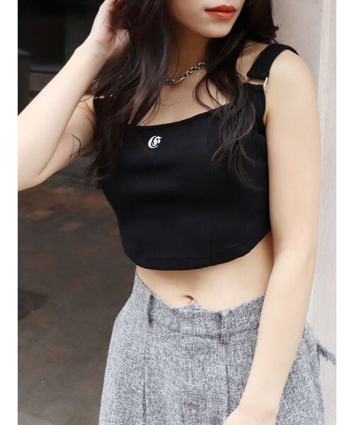 ■デザインフロントにワンポイント刺繍を入れたコルセット風のデザイントップスです。リブ素材で伸縮性もあり、フィット感があるので着心地も◎フロントの裾をカーブさせたデザインにしており、ウエストがシェイプされて細く見える効果が期待できます。ベーシックに使えるアイテムながら、デザイン性を持たせた洒落見えする一枚です。■スタイリングコンパクトなシルエットのトップスは、ボリュームのあるボトムとの合わせがおすすめ。EVRIS(エヴリス)定番のワイドデニムやデニムスカートとの相性◎インナーにも使えるので、上からシャツを羽織ったスタイリングもおすすめです。-------------- 透け感:なし 裏地:なし 生地の厚み:普通伸縮性:なし --------------