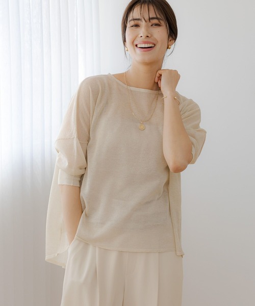 さりげない大人の肌見せを叶えるならこれ どのようなボトムにも合わせやすい、高見えトップスならこれ。 ほどよい透け感でこれからの季節にも気負いなく着用頂けます。 また、オーバーサイズの設計は大人体型をきれいにみせてくれるの嬉しいポイント。 光過ぎないラメはスタイリングを高見えで上品に見せてくれます。 【素材】 ・ほどよい透け感とラメが上品見え ・素肌を綺麗にみせてくれる滑らか素材 【悩みに“効く”ポイント】 ・体型をカムフラージュするほどよいシアー感 ------------------------ 【お気に入り登録のおすすめ】 ■商品のお気に入り(♡)登録 ┗完売カラーの再入荷通知や、完売間近の通知、ZOZO店のみのセールなどの通知を受けることができます。 ■ショップのお気に入り(♡)登録 ┗新商品や再入荷など、いち早くブランドのお得な情報を受け取ることができます。 ------------------------