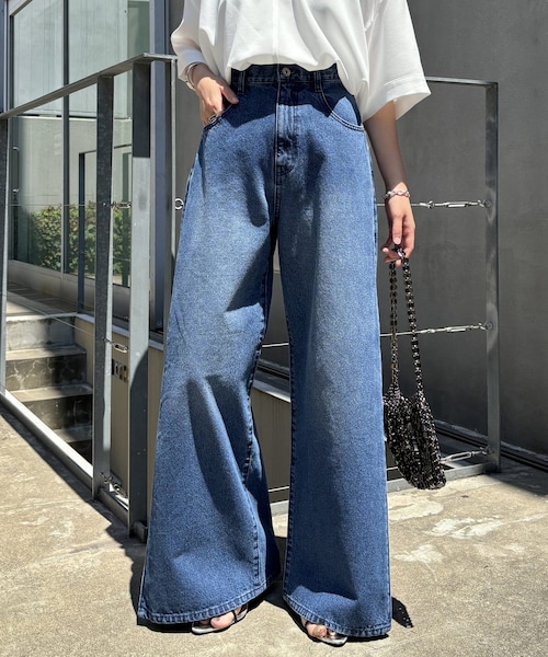 サイドのタックで美脚効果が叶うトレンドのヴィンテージ風ワイドデニム【POINT】・ウエストを高めにしサイドのマチ部分を濃くすることで脚長効果が叶うワイドデニム・スーパーワイドのシルエットで脚のラインを拾わずお洒落に体型カバー・サイドパーツの丈を他の部分よりも短くして段差を出したり、後ろポケットもダーツでわざと段違いを出したり他の人とは被らないデザイン・歩くたびにサイドの色が見えるワイドデザインは“脱カジュアル”でドレッシーにも着ていただけます。・サイドのマチ部分は加工前に一度縫い込み、加工後にほどくことで色が濃いままで残るようにしております。【おすすめコーディネート】存在感があるアイテムなので、シンプルなトップスと合わせてもコーディネートが決まります。秋冬にはジャケットと合わせるとスタイリッシュなコーディネートが完成します。【おすすめのスタイリングアイテム】・ジョーゼットラウンドヘムブラウス CLZ1041604A0006・配色ベロアノースリーブ CLZ1041606A0002・【前後2WAY】ニットベスト CLZ1041705A0001・シアーリネンライクダブルジャケット CLZ5041307A0004【素材】綿100%透け感:なし裏地:なし伸縮性:なし光沢感:なし洗濯:手洗い可【Q.anos/キュアノス】22SSから立ち上がったコラージュデニムブランド、Q.anos。ヴィンテージデニムから感じられるラフさと、女性らしさをバランスよく兼ね備えたアイテムを手掛けます。カジュアルダウンではなくカジュアルアップし高揚感が得られるデザインが特徴。トップス次第で季節問わず長く着て頂けるのも魅力のひとつ。ジャンル問わず幅広いスタイリングで着て頂けるアイテムを展開。【気になる商品は「お気に入り」登録を】 ハートマークをクリックし、お好きなカラーを選んでお気に入りに登録すると入荷情報や残り1点の通知、完売カラーの再入荷、セール情報などを受け取ることができます。※撮影場所やお使いのモニター環境により若干お色味が異なる場合がございます。特にロケの撮影では明るく見える傾向にございます。詳細撮影画像で色味をお確かめくださいます様お願いいたします。※サンプルで撮影をしております。若干の仕様が変更になる場合がございますので予めご了承の上ご注文くださいますようお願いいたします。※サンプルでの採寸のためあくまで目安となります。予めご了承ください。
