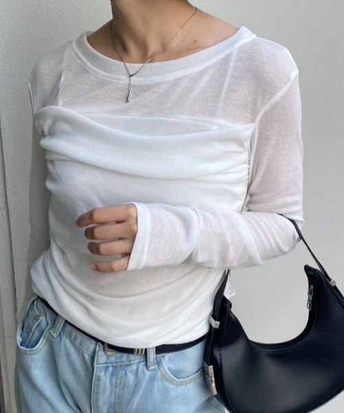 -POINT- ・シアー×プリーツで女性らしさを演出してくれる! ・フロントにあるプリーツデザインが可愛い! ※背中部分は全体がシースルーになっています。 ・袖もシアーになっているので、夏でも涼しく着れるアイテム♪ ・袖も長めになっていて可愛いです♡ ・オールシーズン着れるアイテムです! -STYLING- ・スリムなデザインなので、ワイドデニムとの相性もバッチリ☆ ・透けても大丈夫なキャミソールや、ブラトップがおすすめです。 ・カーゴパンツやデニムスカートを合わせて韓国ファッションにも◎ ・スウェットパンツやキャップでラフな韓国風コーデにも♪ ・スラックスパンツやマーメイドスカートを合わせて大人なコーデもできます! ・ジャケットを羽織っても大人っぽいスタイリングに◎ ・大き目のバングルを袖の上からつけてポイントに。 ・足元はスニーカーでカジュアルに、パンプスやサンダルで夏らしさを♪ ・韓国ファッションがお好きな方にもおすすめです 《Instagram》@me_bole こちらの商品はセレクト・インポートアイテムのためサイズ感が日本規格のものとは異なります。 お買い上げの際にはサイズチャートでご確認頂きますようお願いいたします。 【お買い物をよりお楽しみいただくために】 ●商品のお気に入り登録(ハートマークをクリック) 完売カラーの再入荷や、ラスト1点のお知らせ、セール情報などの通知を受け取ることができます。 ●ブランドのお気に入り登録 新商品や再入荷など、お得な情報をいち早く受け取ることができます。 ●最短で翌日お届け 商品をカートに入れた後、注文内容の確認ページで「即日配送」を選択していただければ、最短でご注文した翌日にお届け致します。 是非ご利用頂き、お買い物をお楽しみください。