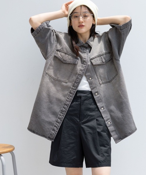 加工感がトレンドライクなオーバーシャツ! ■おすすめスタイリング ☆トレンドライクコーデには・・・ レーススカートやハーフパンツと合わせ、程よい肌見せが可愛い! 一枚着はもちろん、Tシャツなどに羽織った着こなしも◎ ☆セットアップ風な着こなしも! ワイドデニム×デザインタンクで合わせ、ワントーンコーデに◎ セットアップでの着用も、トレンドライクでおすすめです! ■ポイント ルーズなサイジングでトレンド感溢れるオーバーデニムシャツ。 襟やポケットにはダメージ加工を施し、ヴィンテージライクな雰囲気に◎ 全体的にゆったりとしたシルエット、ドロップショルダー仕様にすることでリラックス感のある着心地です。 程よく厚みのあるサマーデニムを使用し、暑い時期も着用可能! ウォッシャブル加工を施し、一枚着でも映える主役級アイテムに仕上がりました! ■素材 程よい厚さとハリ感を兼ね備え、夏でも着やすいサマーデニム。 1着持っていれば着まわしやすい、優秀アイテムです! 肌触りが良く、通気性・吸湿性・耐久性に優れています。