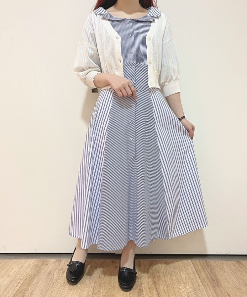 ピッチを変化させたランダム感のあるストライプが目を惹くワンピース。抜けた衿もとに小ぶりな開衿が上品さを演出してくれます。ボリューム感のあるお袖とウエストをきれいにシェイプしたメリハリのあるシルエットがクラシカルな印象に。シャツ素材がこれからの季節にも着やすいポイントです。一枚でばっちりコーデの決まる一品は一枚あると大活躍間違いなし◎======ポケット:なしファスナー:なし(フロントボタンで着脱)ウエストゴム:背中部分シャーリングゴムあり裏地:スカート部分のみあり生地感:ふつう透け感:ややあり======※アイロンは当て布を使用してください。▼商品のお気に入り登録▼気になるアイテムの♡をクリックしてお気に入り登録すると残り1点の通知、完売カラーアイテム再入荷の通知、お得な通知が届きます。▼ショップお気に入り登録▼ショップからの新作商品やお得なイベント情報など、いち早くブランドからの情報を受け取ることができます。▼an another angelus/アンアナザーアンジェラス『パリの裏通りにひっそりとたたずむ小さな隠れ家。その扉を開けると…』 懐かしくも新しいレトロ感をレディライクに表現し、大人の女性のワードローブを提案。50年代パリのメゾンからインスパイアされたモードなシルエットやクチュール感のあるディティールにこだわった「Mode of classic」のアイテムも展開中です。▼Fint/フィント50~70年代のクラシカルなヴィンテージデザインに トレンド感をプラスしたレトロ&ガーリースタイルをお届け。 古着屋で一点ものを見つけるような【ときめき】を感じられるブランドです。70s~90sストリートからイメージしたアイテムにレトロ&ガーリー要素をMIXしたトレンド感あるカジュアルアイテムが揃う「Pink Label」のアイテムも展開中!