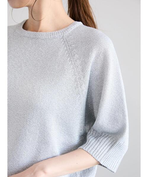 キラめくグリッターをMIXして華やかな印象に仕上げたサマーニット。 ラグラン切り替えのスリーブで動きやすく、肩周りを華奢な印象に見せてくれるのもうれしいポイントです。 コーディネートのアクセント使いにも映える、ワードローブに是非取り入れたいアイテム。 ※商品画像は、撮影環境やお客様のご利用のPC・スマートフォンのモニター環境などにより実物と色味に差異がある場合がございます。