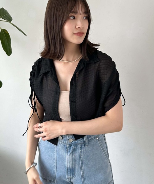 ■主役級シャツアイテム■ チェック見えする凹凸のあるシアー生地が一癖ある素材感。 袖のドロストも加えさらにデザイン感UP。1枚で着映えするトップスです。 柔らかく落ち感のある素材感で華奢見え。 丈もコンパクトなのですっきりした印象で着こなせます。 開襟と普通のシャツカラーの2wayで使えるデザイン。 印象がかなり変わるので着回し力抜群です。 肩ドロストで袖の長さを調節可能。 ドロスト部分の華奢リボンが女性らしい印象に見せてくれます。 デニムにカップ付きインナーの合わせがシンプルでおすすめ♪ ーーーーーーーーーーーーーーー 透け感:あり 裏地:なし 伸縮性:なし 光沢感:なし 生地厚さ:普通 洗濯方法:手洗い可 ※詳しいお手入れ方法は商品についているタグをご覧ください ーーーーーーーーーーーーーーー ※ご利用のモニター環境により、実際の色味と多少異なる場合がございます。 … information … 欲しいitemをお気に入り登録(♡マークをclick) ・お買いのがし対策…完売itemの再入荷やラスト1点の情報をお知らせ ・欲しいitemをお得にget…price downになったらいち早くお知らせ ・スムーズ検索…ZOZOのお気に入りアイテムページで簡単checkできるから、再検索不要♪