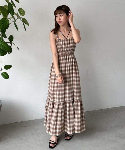■1枚で着映えする主役級ワンピース■ 軽くシワになりにくいチェック素材。 ベーシックな色展開で取り入れやすいので、 普段柄物を着ない方でも着ていただきやすいワンピースです。 前後2way、肩紐取り外し可とマルチに着こなせる1枚。 リボンを前で着ていただくとよりガーリーな印象になります。 肩紐は長さ調節が3段階可能。 身長関係なく着こなせる優秀アイテムです。 腰回りはボリューム控えめ、裾はたっぷりのティアードシルエットで女性らしい印象に。 上身頃はぐるっとゴムになっているので、すっきりと体型問わず着ることができます。 1枚でも、トップスに重ねても、バランスがとれる肩紐の太さなので、 どちらの着こなしかたもおすすめ♪ ーーーーーーーーーーーーーーー 透け感:なし 裏地:あり 伸縮性:胸元ゴム 光沢感:なし 生地厚さ:普通 洗濯方法:手洗い可 ※詳しいお手入れ方法は商品についているタグをご覧ください ーーーーーーーーーーーーーーー ※ご利用のモニター環境により、実際の色味と多少異なる場合がございます。 … information … 欲しいitemをお気に入り登録(♡マークをclick) ・お買いのがし対策…完売itemの再入荷やラスト1点の情報をお知らせ ・欲しいitemをお得にget…price downになったらいち早くお知らせ ・スムーズ検索…ZOZOのお気に入りアイテムページで簡単checkできるから、再検索不要♪