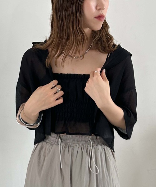 ■夏でも涼しく着こなすセットアイテム■ 軽めの楊柳素材のビスチェとのアンサンブルアイテム。 archivesでも大人気なセットアイテムを夏でも涼しく着こなせる1枚です。 ビスチェはインナーとしての着用も可能。 すっきりとした丈感で着用可能なのでヘルシーな肌見せが叶います。 程よい透け感で涼し気に。 袖は少し長めになっているので気になる二の腕のカバーしてくれる優秀アイテムです。 それぞれ単品での着回しも可能。 Tシャツにビスチェを重ねて着たり、キャミワンピースの羽織にシャツを合わせていただいたり様々なスタイリングを楽しめるトップスです♪ ーーーーーーーーーーーーーーー 透け感:あり 裏地:なし 伸縮性:ビスチェ ゴムあり 光沢感:なし 生地厚さ:普通 洗濯方法:手洗い可 ※詳しいお手入れ方法は商品についているタグをご覧ください ーーーーーーーーーーーーーーー ※ご利用のモニター環境により、実際の色味と多少異なる場合がございます。 … information … 欲しいitemをお気に入り登録(♡マークをclick) ・お買いのがし対策…完売itemの再入荷やラスト1点の情報をお知らせ ・欲しいitemをお得にget…price downになったらいち早くお知らせ ・スムーズ検索…ZOZOのお気に入りアイテムページで簡単checkできるから、再検索不要♪
