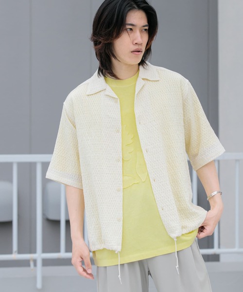 ほどよいシアーが着こなしやすい半袖シャツ〇独特な表情のシアーレース〇落ち感のある生地でリラックスして着心地〇裾にドローコードが付属stylingベーシックなアイテムですが裾のドローコードによりパンツのシルエットに合わせた着こなしが可能です。ワイドパンツと合わせるときは裾をしぼって短丈に、テーパードシルエットのときはコードをのばしてきれいめに。material清涼感のあるシアーレース生地で肌触りの優しい生地です。柔らかく落ち感がありリラックスできる着用感です。【2024 Spring/Summer】【24SS】※商品画像は、光の当たり具合やパソコンなどの閲覧環境により、実際の色味と異なって見える場合がございます。予めご了承ください。※商品の色味の目安は、商品単体の画像をご参照ください。▼お気に入り登録のおすすめ▼お気に入り登録商品は、マイページにて現在の価格情報や在庫状況の確認が可能です。 お買い物リストの管理に是非ご利用下さい。素材感透け感 : ややあり伸縮性 : なし裏地 : なし光沢 : なしポケット : なし