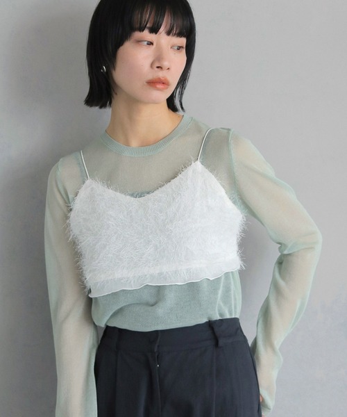 着こなし方様々、周りと差が付くシャギービスチェWEB限定トレンドの毛足の長いフリンジのジャガードを使用したビスチェ。ふわふわな生地でありながら落ち感があるので着ぶくれしないのがポイント。華奢な肩紐と裾のシアー素材が女性らしい繊細な雰囲気を演出してくれます。肩紐は2本仕立てになっており、背中の紐通しのループに通すことで様々なアレンジが楽しめます。≪Styling≫レイヤードするアイテムによって違った雰囲気のコーデを楽しんで頂けます。春夏はTシャツやタンクトップ、シアートップス合わせ、秋冬はブラウスやタートルネックなどインナー次第でロングシーズン着用して頂けます。ロングシーズン着回しアレンジを楽しめる万能アイテムです。≪Fabric&Detail≫伸縮性・・・なし透け感・・・多少あり厚み・・・★☆☆☆☆▼《お気に入り登録》のおすすめ▼【商品のお気に入り登録】気になるアイテムのハートマークを押してお気に入り登録すると完売カラーの再入荷通知やラストの通知、セール通知を受け取ることができます。【ブランドのお気に入り登録】新商品や再入荷など、いち早くブランドのお得な情報を受け取ることができます。ぜひご利用頂き、お買い物をよりお楽しみください。【cheriella / シェリエラ】mode x urban x spicyそのデザインに心を奪われる 時を生み出すブランド