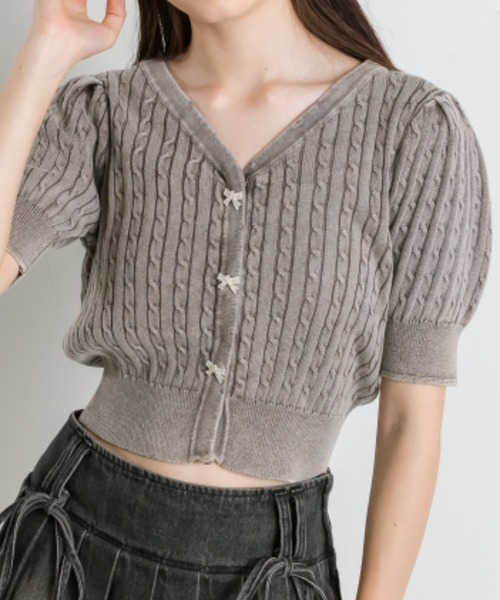 大人気リボンビジューカーディガンの新バージョンが登場■デザイン・トレンドのリボンモチーフのビジューが可愛いカーディガン。・細めのケーブルラインで華奢見えし、フェミニンにもカジュアルにも合わせやすいデザイン。・柔らかい生地感でチクチクせず着ていただけます。・裾のリブは太めなので腰の位置を高く見せてくれます。・短めの丈感でどのボトムでもバランスよく着ていただけます。■カラー・オフ/モカ/サックス/チャコールの4色展開■スタイリング・カップ付きインナーと合わせてトップスとして着るのがおすすめ。・前を開けてキャミワンピなどの羽織りとしても活躍します。・ボトムスはガーリーなスカートや、カジュアルなパンツまで幅広く合わせていただけます。-----------------------------裏地:なし光沢感:なし透け感:なし伸縮性:あり手洗い: 可能タンブラー乾燥: 不可アイロン: 不可-----------------------------model:166cm※サンプルで撮影している為、実際の商品と若干仕様が異なる場合がございます。※着用、お取り扱いの際は、商品についている品質表示とアテンションタグを必ずご確認下さい。※ご覧のモニター環境や撮影環境により実際の商品と多少色味が異なって見える場合がございます。※引っかけ注意・粗い組織のものや、表面に凹凸があってルーズな組織のもの表面に糸が浮き出ているものは、ちょっとした不注意から引っかけてしまいがちです。取り扱いの際は取り扱い絵表示確認の上、十分注意してください。・着用時にベルトや、バックや周囲の壁など表面の粗いものとの摩擦や引っかかりに注意してください。■お気に入り登録のおすすめ【気になるアイテムを登録】ハートをクリックしてお気に入りに登録すると完売カラーの再入荷やラスト1点の通知、セールの通知を受けとることができます。【ブランドを登録】新商品や再入荷、セール通知など、いち早くブランドの情報を受けとることができます。