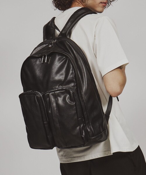 【素材】3種類の素材のブラックからお選びいただけます。<019>シンセティックレザー<119>ナイロンフラット(光沢感がありキレイめな風合い)<219>合繊オックス(カジュアルな風合い)【デザイン】A4サイズも入る容量で、小さ過ぎず大きすぎないサイズ感のリュック。他ポケットがコーディネートのアクセントになっています。※ポケット数:内側×3 外側×4※A4サイズ収納可※照明の関係により、実際よりも色味が違って見える場合があります。また、パソコン・スマートフォンなどの環境により、若干製品と画像のカラーが異なる場合もございます。店舗へのお問い合わせ商品番号:170-09321●製品寸法:00:高さ46.5cm 幅(上部)22cm 幅(下部)32cm マチ13.5cm 持ち手上がり7cm ショルダー対応サイズ52~101.5cm備考:重量:約740g(サンプル重量)