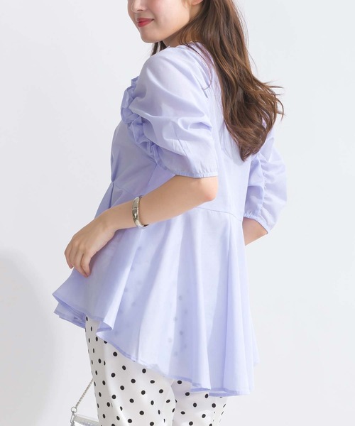 清涼感のあるさらりとしたライトオックス生地のペプラムブラウスラグラン切り替え部分にミニフリルを付けることによって身頃をコンパクトに見せ、深めのタックが立体感を出してくれます。少し長めのペプラムデザインに後ろ長めの裾、ヒップはカバーしながらメリハリのあるシルエットを作ってくれます。後ろボタン開き【詳細情報】厚み:■薄手 □ふつう □厚手透け感: □なし ■あり光沢感: ■なし □あり伸縮性: ■なし □あり裏地: ■なし □ありポケット:■なし □あり 重量: M/約210g L/約210g※撮影場所や明るさにより実際の商品と色味が若干異なる場合がございます。 ☆商品のお気に入り♡登録を押せば”再入荷通知”や”残りわずか通知” 値下げのお知らせが届きます!お気に入りのブランド登録していただければ新商品入荷のお知らせも届きますので是非登録してみて下さい