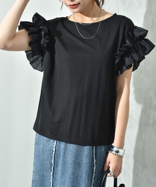 大き目な袖フリルが魅力メリット付トップスパッと目を惹く大きい袖フリル!カジュアルになりがちなTシャツを女性らしく仕上げたお勧めな1枚です。持っているだけで様々な着こなしを楽しめるおすすめなアイテムです。これからのシーズンに嬉しいカット素材を使用。さらに肌に触れるとひんやりする接触冷感のメリット付きも嬉しいポイントです。体に優しく沿うカット素材は華奢見えも叶えてくれる優秀な1枚です。デイリーにデニム、きれい目にテーパードパンツやスカートでオフィススタイルなど着回し力は最強です。■取扱いご自宅でイージーケア(手洗い)ができます。INTERPLANET/actuel(インタープラネット/アクチュエル)■conceptいつだって私らしく、私自身のスタイルが決まる。。。時代や年齢に媚びない『らしさ』を纏って生きる女性へ。旬なベーシックと抜け感のあるカジュアルをMIX。そんな大人カジュアルコーデを提案します。■お気に入りの登録についてショップ・ブランドのお気に入り登録でクーポンやタイムセールの通知などお得な情報を受け取ることができます♪また、気になるアイテムのお気に入り登録でセールや再入荷の通知など受け取ることができます。