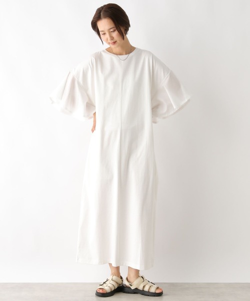 異素材切り替えのワンピース 【デザイン】 袖を透け感のある布帛に切り替えることで抜け感を演出できるワンピースです。体型カバーも叶うのも嬉しいポイントです。 【スタイリング】 ・アクセサリーを付けて1枚で着るのがおすすめです。 ・パンツを合わせて裾からちらっと見せるのも◎ --------------------------------------------------- 【気になる商品はお気に入り登録がおすすめ!】 ・在庫残りわずか ・再入荷 ・セールの情報 などの通知を受け取ることができます。 気になる商品は♡をクリックして、 「お気に入り登録」しましょう! 【ショップ・ブランドのお気に入り登録も!】 新商品や再入荷、セール、クーポンの配布など、 いち早くお得な情報を受け取ることができます。 ---------------------------------------------------