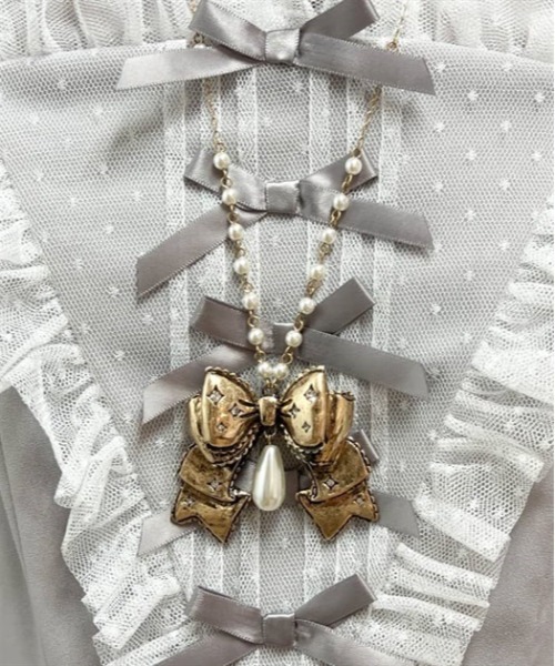 【アイテム説明】【商品紹介】kawaiiラインにぴったりな存在感ある大きめリボンがポイントのネックレスです。【デザイン】ふんわりと膨らんだ大きめリボンにはビジューがあしらわれています。クラシカルから甘めのお洋服まで幅広く着用できる合わせやすいデザインに仕上げました。【コーディネート】存在感がありkawaiiラインのお洋服にぴったりのアイテムです。▽ axes femme kawaii * アクシーズファムカワイイレースアップや刺繍、ときめくディティールで 飾り付けられたお洋服たち 毎日可愛い服を着ていたい世界中の女の子の為のワードローブ**********************.。.:? お気に入り登録のおすすめ ?:.。.∇気になるアイテムを登録∇ハートをクリックしてお気に入りに登録すると完売カラーの再入荷やラスト1点の通知、セールの通知を受けとることができます。∇ブランドを登録∇新商品や再入荷、セール通知など、いち早くブランドの情報を受けとることができます。是非ご利用頂き、お買い物をお楽しみ下さい。.。.:? 商品について ?:.。.・サイト上のカラー名と、お届け商品に記載されているカラー名が異なる場合がございます。・商品の色味は、撮影場所や光のあたり具合、お客様のお使いのPCのモニター環境などにより色味が違って見える場合がございます。予めご了承の上ご注文下さい。.。.:? 返品・キャンセルについて ?:.。.・着用、洗濯後の返品は致かねます。・商品到着後、着用前に商品を確認して頂きますようお願い致します。