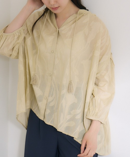 【KATHARINE ROSSセレクト】1枚で着映えするトレンド感抜群のジャガードトップス身頃は花柄で、しっかりと凹凸感を持たせた表情のジャカード素材です。程よい透け感がインド製コットンのナチュラルな雰囲気と爽やかさを際立たせてくれます。襟元のタッセルデザインもアクセントに。後身頃はお尻がすっぽり隠れる長めの丈なので、体型カバーも叶う一着です。ゆったりとしたシルエットを活かして、細身のパンツにタックアウトでコーディネートいただくのがおすすめです。…………………裏地:なし透け感:ややあり生地の厚さ:薄手…………………【お買い物をよりお楽しみいただくために】・商品のお気に入り登録をおすすめします!♡マーククリックで登録できます。完売カラーの再入荷や、ラスト1点になったときの通知、セールの際に通知などお得な情報を受けることができます。・ブランドのお気に入り登録もご一緒にお願いいたします!新商品や再入荷、などいち早くブランドの最新情報をお届けします。