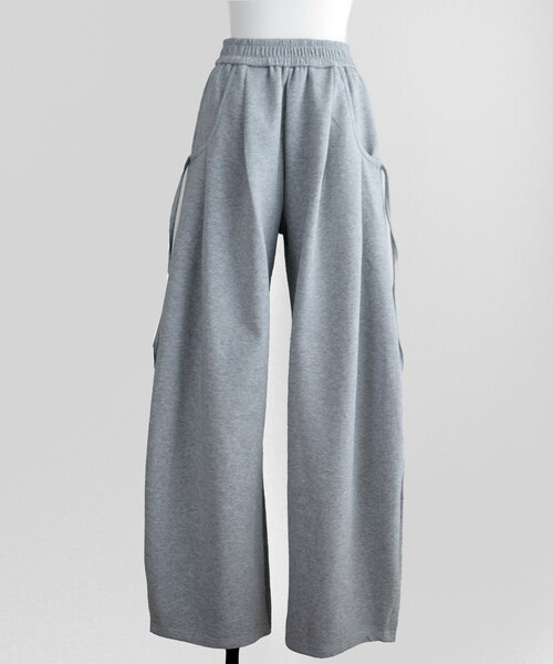 ◆アイテム詳細◆ とろみ感のある柔らかいポンチ素材に、トレンド感のあるワイド×カーブシルエットを詰め込んだおすすめのボトムス。 前タックの立体感と絶妙なカーブシルエットでゆるっとモードな着こなしに仕上がる1枚です。 両ポケットのサイド紐はデザインなので垂らしてご着用下さい。 トップスをインしてすっきりさせたり、ショート丈のトップスを合わせコンパクトな着こなしがおすすめです。 ───────────────────────────── 【COLOR】グレー・ブラック 【SIZE】Fサイズ 平置き(㎝)着丈109 ウエスト33-41(総ゴム) ヒップ67 裾幅28 股下74 【素材】本体 綿68% ポリエステル32%