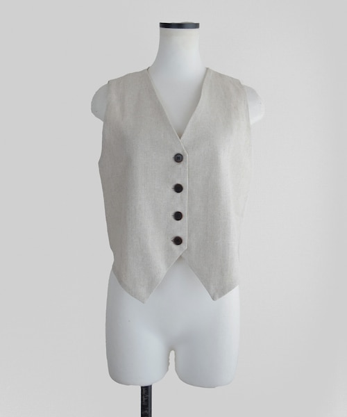 ◆アイテム詳細◆ 一押しのリネンセットアップの登場です! 羽織るだけでモードに決まるジレベスト。 素材にはリネン使用を仕様し、肌触りも滑らかこれからのシーズンにピッたっりです。 後ろのベルトデザインが腰位置を高く見せる効果もあるので様々なパンツ、スカート、トップスと合わせやすい仕様です。 《リネンマイルワイドパンツ》と同素材なのでセットアップとしても着用いただけます。 ───────────────────────────── 【COLOR】ベージュ・ブラック 【SIZE】FREEサイズ 平置き(㎝) 着丈52 肩幅33 身幅39 裾幅45 【素材】本体 麻100% 裏地 ポリエステル100%%