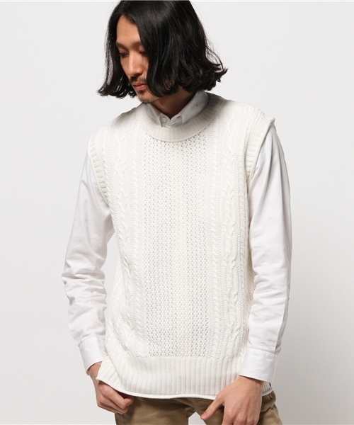 【Ciaopanic】 アラン柄ニットベストアラン編みが特徴のニットベストは、シャツとのレイヤードスタイルにピッタリのベストです!!フィットしすぎないサイズ感です!! 綿麻素材なのでサラッと着こなせる使い勝手の良いニットベストです★