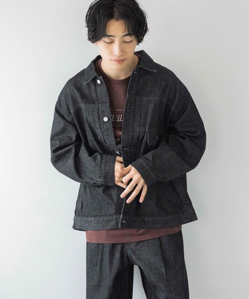 ■素材■アメリカ最古のデニム工場でもある、コーンミルズ社のデニムを使用しているため品質のよいデニム素材です。デニムならではの加工感の良さも特徴です。■デザイン■1stタイプをベースに、ワイドシルエットにモディファイさせたデニムジャケットです。胸に配したビックポケットと、スナップ開きのサイドスリットがポイントになります。サイドスリットはスナップボタンにより開閉可能で、気分に合わせてアレンジ出来ます。■スタイリング■デニムワイドパンツ131414とセットアップで着用して頂けます。秋口はシャツとして冬はアウターとして使えるので長い期間楽しめるアイテムです。