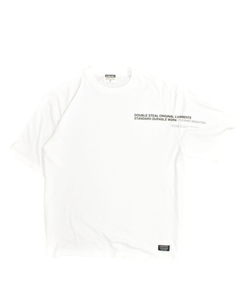 胸から袖にかけて跨るようなプリントがシンプルながらも一味違うTシャツ。ビッグシルエットボディを採用しトレンドにもマッチ。丈夫で伸びにくいしっかりとした厚みのある生地。左右両肩から首後ろまでテープ処理をしてあることで型崩れを防ぐ仕様になっている。*生地 度詰め天竺 5.6oz*品質 綿 100%*モデルは身長172cm体重60kgで、XLサイズを着用しています。