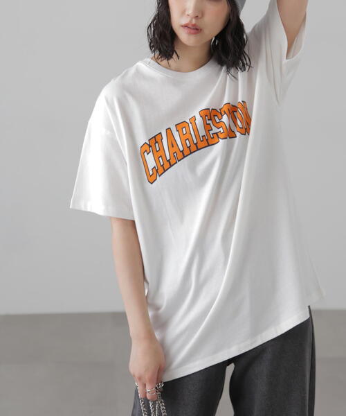 〔fabric&design〕カラッとしたタッチのOE天竺素材のビッグT。肩を落としたドロップショルダーデザインでこなれ感とストリート感のあるサイジング。フロントにはカラフルなカレッジ風ロゴを大きくプリント。〔styling〕ワイドデニムやカーゴパンツとも相性が抜群で、あえて全身だぼっとさせた韓国ストリートな着こなしがおすすめ。ミニボトム合わせでミニワンピとして着てもかわいいです。※「CHARLESTON」サウス・カロライナ州の都市■透け感:ややあり■生地の厚さ:普通■裏地:なし■伸縮性:あり■光沢:なし■シルエット:スタンダード---------------------------------------------------◆商品のお気に入り登録◆お気に入りアイテムの値下げ・再入荷・在庫1点などの通知を受け取ることができます。◆ブランドのお気に入り登録◆新商品や再入荷、セール、クーポン配布などお得な情報を受け取ることができます。---------------------------------------------------※ご注文いただいた予約商品のお届け時期の確認は、注文履歴ページより行えます。