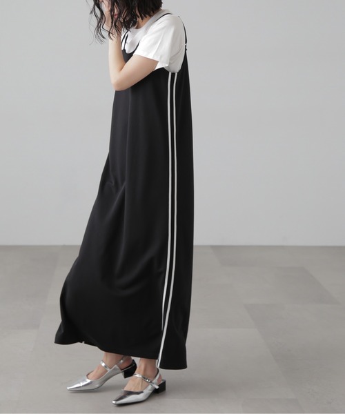 (fabric&design)薄いポンチ素材を使用したカットキャミワンピース。トレンドのスポーツテイストを取り入れてサイドにラインテープを入れています。シルエットは程よく広がる綺麗なAラインです。胸元はダブル紐になっており、背中も少し凝ったデザインが可愛いです。(styling)一枚でデザイン性のあるアイテムなのでインナーにはシンプルめなTシャツやタンクトップがおすすめ。■透け感:なし■生地の厚さ:普通■裏地:なし■伸縮性:あり■光沢:なし■シルエット:スタンダード---------------------------------------------------◆商品のお気に入り登録◆お気に入りアイテムの値下げ・再入荷・在庫1点などの通知を受け取ることができます。◆ブランドのお気に入り登録◆新商品や再入荷、セール、クーポン配布などお得な情報を受け取ることができます。---------------------------------------------------※ご注文いただいた予約商品のお届け時期の確認は、注文履歴ページより行えます。