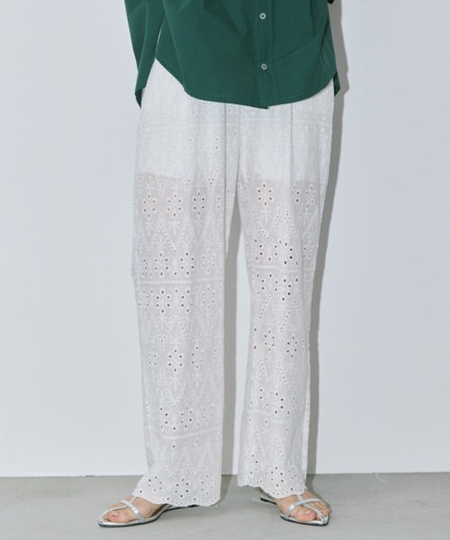 2024SS collection程よい透け感が夏らしい、繊細なパターンのコットンレースを使用したパンツ。ウエストはゴムの仕様で履き心地にもこだわりました。■styling・カジュアルなトップスと合わせてカッティングコットンレースは女性らしい印象なので、ロゴTシャツなどカジュアルアイテムとの合わせもおすすめ。・ワンピースやチュニックとのレイヤード裾のスカラップにもこだわったデザインは、レイヤードアイテムとしても活躍します。《point》・涼し気なコットンレース・ウエストゴムで着心地抜群・レースの柄がちょうどよい華やかさ《detail》・ショート丈の裏地付き・ストレートシルエットで着回し力抜群・ウエストはストレスフリーな総ゴム仕様《fabric》・程よい透け感が涼し気なコットンレース・透け防止の裏地はショート丈素材表地:コットン100%裏地:ポリエステル100%サイズウエスト:59cm~86cm(ゴム最大値)ヒップ:91cmパンツ丈:103cm……………………透け感 : あり(ももまでの裏地付き)厚さ:薄手伸縮性:なしお手入れ方法手洗い 〇お取り扱い上のご注意:ご自宅でお手入れが可能です。詳しくは付属の「お取り扱い上のご注意」をご確認ください。……………………※ご注意※・屋外の光や照明の当たり具合で、実際の商品の色味とカラー別画像の色味に若干の違いが発生する場合がございます。・詳細画像と併せてご確認の上、ご注文いただきますようお願い致します。【 Libra Cue 】“包み込むような気持ちよさを” 快適で豊かな生活を送りたいそんな暮らしの”きっかけ”となるデイリーウェアをご提案します【 商品のお気に入り登録 】完売カラーの再入荷通知やラスト1点の通知プライスダウンの通知も受け取ることができます。【 ブランドのお気に入り登録 】新商品や再入荷など、ブランドの情報をいち早くお知らせします。※ご注文いただいた予約商品のお届け時期確認は、注文履歴ページより行えます。