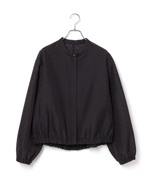 【素材】 凹凸のある表面感が特徴的な日本製ジャガード素材。また、モノフィラメント糸が入っているのでブライト感があります。 【デザイン・シルエット】 ふんわりしたシルエットと衿元の釦とファスナーのゴールドがアクセントになっています。軽くシワになりにくいアイテムなので、汎用性があります。 【カラー】 ブラック、ライトベージュ 2色展開 【おすすめのスタイリング】 シアー感と張り感がるので、ノースリーブの上からカーディガン代わりにサッと羽織れる羽織りとしてお勧めです。 ---------------------------- 透け感:ややあり 裏地:なし 伸縮性:なし 光沢感:ややあり 生地の厚さ:薄手 ポケット:あり 開き方:ファスナー ---------------------------- 【モデル情報】 モデル身長:168-170cm 着用サイズ:F ※画像の商品はサンプルです。実際の商品と仕様、加工、サイズが異なる場合がございます。 ※撮影場所やライティング、お使いのモニター環境によって色の見え方が異なる場合がございます。 ※商品のカラーは画像の色味をご参照ください。動画は仕様説明のため、色味が実物と異なる場合がございます。