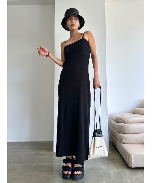 【Item Comment】 華奢なストラップが目を惹くキャミワンピース。 大人気のデザインワンピースが、 新色KHAKIを加えてリバイバルいたしました。 ヘルシーな肌見せが楽しめるラインデザインと ボディラインを綺麗に見せてくれる拘りのシルエットで、 どの角度から見ても美しく抜かりのない一着です。 取り外し可能なカップ付きなので、 インナーレスで着用ができ アンダーバスト部分にはゴムを仕込んでいるため、 安定感のある着心地も嬉しいポイント。 程よい厚みで伸縮性のあるリブカットソー素材を使用することで ボディラインを拾いすぎず、 ストレスフリーな着心地とスタイルアップを叶えました。 合わせる羽織りや着こなし方次第で ロングシーズンお使いいただける、 一着あれば大活躍間違いなしのアイテムです。 【Coordinate】 一枚でさらっと着ていただくのはもちろん、 シアーシャツやベスト、ジャケットを羽織っても◎ キャップ×スニーカーでカジュアルにも、 ヒールサンダル×ミニBAGでレディライクにも 組み合わせ方によって印象を変えた着こなしが楽しめます。 【Color Variation】 BLACK/KHAKI ※着用画像は実際の商品とお色味が多少異なる場合がございます。 【Material】 裏地:■カップ部分のみあり □なし 厚み:□薄手 ■普通 □厚手 透け感:□あり ■なし 伸縮性:■あり □なし 光沢感:□あり ■なし 【Model】 Director(佐野真依子):162cm 【 “お気に入り登録”でお買いものが便利に! 】▼商品のお気に入り登録完売カラーの再入荷時や、ラスト1点の時、セール開始時にお知らせします。 ▼ブランドのお気に入り登録新商品や再入荷、セール情報など、 いち早くTRUNC88のお得な情報を受け取ることができます。ぜひご活用ください。