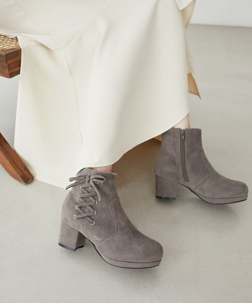 お客様の声を反映してアップデート!サイドの編み上げとリボンがかわいいショートブーツ。■デザイン「足首周りが当たって擦れてしまう」というお客様からのご意見をいただき、足首に当たる裏地を柔らかい素材へ変更。ふわふわとした柔らかい素材にすることで足首を包み込むような当たりの良さへと改善しました。柔らかいふかふかクッションを使用したサイドレースアップブーツ。レースアップは固定されたデザインでほどける心配もありません。脱ぎ履き簡単な内側サイドジップ仕様。高すぎないちょうどよいヒールが歩きやすくデイリーに使えます。スエード素材でカジュアル過ぎず大人可愛い足元に。■サイズ感甲高・甲幅のある方も履いていただけるサイズ感。取り外しできるパールブーツよりも低めのヒールです。MAJESTIC LEGONシューズ対応サイズSサイズ 約22.0~23.0cmMサイズ 約23.0~24.0cmLサイズ 約24.0~25.0cmXLサイズ 約25.0~26.0cm※素材の特性により若干差異が生じる事がございます。■スタイリングスカートやワンピースなどフェミニンアイテムと好相性。シンプルなコーデにアクセントとしても◎■商品のお気に入り登録 再入荷通知やのこりわずか、お得なプライスダウンの情報も受け取ることができます。ぜひご登録ください◎※サンプルでの撮影の為、製品と仕様が異なる場合がございます。※XLサイズはWEB限定サイズとなります。※C/グレーはWEB限定色となります。※ハンガー画像が実物に近い色となります。※商品の色味は、撮影場所や光のあたり具合などにより色味が違って見える場合がございます。また、お客様のお使いのモニター環境などにより色味が異なって見える場合がございます。予めご了承の上ご注文下さい。