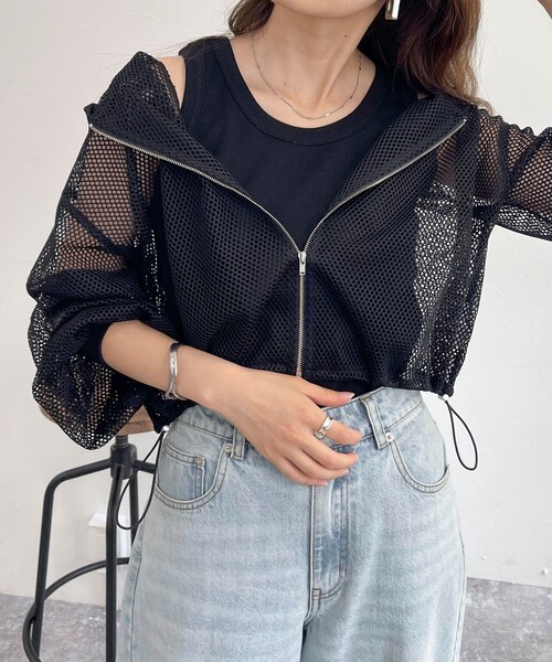 ◇fredy emue◇ 【2024】【セットアイテム】抜け感のあるメッシュパーカー×ベーシックタンクトップのセットが登場!●point・通気性の良いメッシュパーカーとインナーに便利なタンクトップがセットになったお得なアイテム!・メッシュパーカーはトレンド感のあるクロップド丈で、羽織るだけでコーディネートを今年らしいバランスに仕上げてくれます・身幅はややワイドなシルエットが抜け感を演出し、サイドのドローコードでシルエットの調整もしていただけます・セットではもちろん別々でも可愛く着られるアイテムなので、これ一つで着回しの幅が広がります・ワイドからタイトまでどんなシルエットのボトムスも合わせやすく、トレンド感のあるコーディネートに仕上がります透け感:メッシュパーカーのみあり、タンクトップなし裏地:なし伸縮性:タンクトップのみあり、パーカーなし光沢感:なし洗濯:手洗い可●お取扱い上のご注意●*商品を長くご愛用していただきたいため、アテンションタグがある場合は必ずご確認の上、着用又はお取り扱い下さい。*店頭及び屋外での撮影画像は、光の当たり具合で色味が違って見える場合があります。商品の色味は、スタジオ撮影の画像をご参照下さい。*商品画像に関しては出来る限り忠実に表示出来るよう努めておりますが、お客様がご利用のモニターの設定及び特性により、実際の商品と比較し色味に若干の誤差が生じる場合があります。*画像の商品はサンプルとなりますので実際の商品と仕様、加工、サイズが若干異なる場合がございます。*製品洗い加工の商品は、多少の歪み、シワなどが見られたり、風合いやサイズ等が1枚1枚異なります。汗や雨等で濡れた時や、摩擦により色落ちし、他の衣料を汚すことがありますので(特に濃色のもの)ご注意ください。◇商品のお気に入り登録◇【お気に入りに登録 ♡マークをクリック】を是非ご活用ください! 再入荷の通知や、ラスト1点の通知、セールの通知がいち早く届きます。◇ブランドのお気に入り登録◇新商品や再入荷など、いち早くブランドのお得情報が届きます。