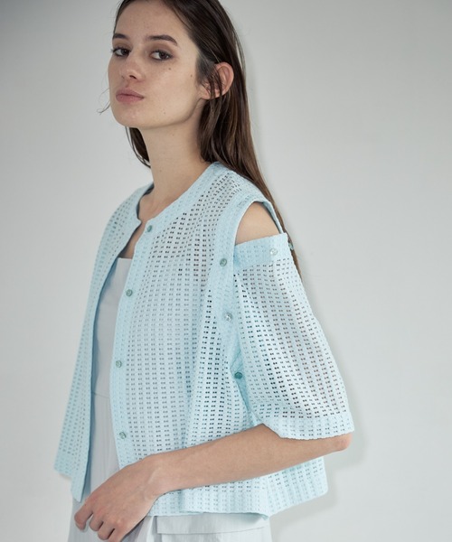 3種類の着方ができる!今期トレンドのメッシュ素材カーディガン ■ 商品ポイント ・袖ボタンが付いており、上の2つ分を外して肩をチラ見せさせたり、全て外してベストにしたりできる ・短すぎず長すぎない程よい丈感で、フレアなボトムスでもタイトなボトムスでも相性抜群 ・肘上まで袖があるため、二の腕を隠してくれる ・肩の位置が落ちず、スッキリ華奢に見せてくれる ■ 生地ポイント ・今期トレンドのざっくりとした網目のメッシュ素材で通気性抜群。 ・真夏でもストレスなく着れる。 ■ コーディネート ・デニムを合わせて大人カジュアルな雰囲気に ・スラックスと合わせてキレイめコーデに ・キャミワンピやタンクトップの羽織としても可愛い ・ベストの状態にして、Tシャツやワンピにプラスするのも◎ ■ ファブリック 伸縮性:なし 透け感:あり 裏地:なし 厚さ:普通 ■【Formeque(フォルミークとは?)】 姿・かたちを表す"forme"と唯一無二を意味する"unique"を組み合わせた造語 由来の通りベーシックながらも、ちょっと他とは違うを演出できるシルエットにこだわったモノ作りをしています。 また、formeには"for me-自分のために-"という意味も含められています。 お洋服を選ぶときに「トレンドだから」ではなく、 「好きだから」という自分の「好き」を大切にしてもらいたい。 「Formequeの洋服を着ている時の自分が好き」と想ってもらいたい。 という気持ちを込めてこのブランド名にしました。 「流行り廃りに流されない唯一無二のスタイル」をぜひFormequeを通して感じていただけると幸いです。 Instagramアカウント:@formeque_official ■お買い物をよりお楽しみいただくために ・商品のお気に入り登録(♡をクリック) 再入荷、完売間近、セールの通知を受け取り可能です ・ブランドのお気に入り登録 ブランドのお得な情報を受け取ることができます。
