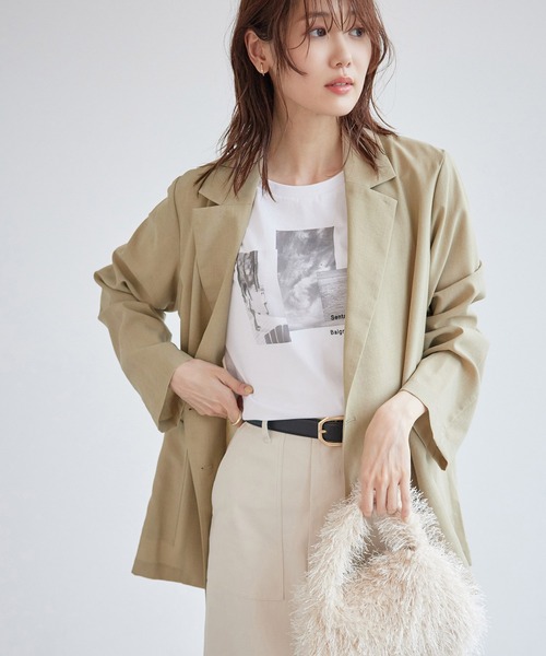 接触冷感とUVカットを両立。夏の外出必携ジャケット。【素材感】 ・シアーな麻調の素材で仕立てた、ダブルジャケット。 ・接触冷感性とUVカット(紫外線遮蔽率90%以上)を併せ持った機能素材を採用。 ・再生ポリエステルを使用した、サステナブルなアイテム。 【デザイン・シルエット】 ・ビッグサイズでモダンな仕上がり。 ・大きなフロントポケットが目印。 ・軽く羽織れる一重仕立て。 【カラー】 ・チャコールグレー、ベージュ、ブルーの3色展開。 【スタイリングポイント】 ・ロングワンピースに羽織って、フェミニンなスタイリングに。 ・ワイドパンツならマスキュリンなルックが完成。 ・ショートパンツ合わせも新鮮で一押し。 ・同シリーズのワイドパンツ(品番:GDS14130)とセットアップ可能。 ※追加生産のタイミングによって色味に差がでる可能性はございます。 <同シリーズアイテム> ・クロップドジャケット(品番:GDV14120) ・ノーカラージャケット(品番:GDV14130) ・ワイドパンツ(品番:GDS14130) ----------------------------- 裏地:なし 透け感:光に当てるとややあり 伸縮性:なし 生地感・厚さ:やや薄手 ポケット:あり 季節:春~秋 ----------------------------- ※撮影時の光、お使いのモニター環境によって色の見え方が違う場合がございます。 ※重量:270g 重量は、サンプルの38サイズでの計測になります。実際の商品と多少異なる場合がございます。 ※モデル身長:165cm 着用サイズ:38