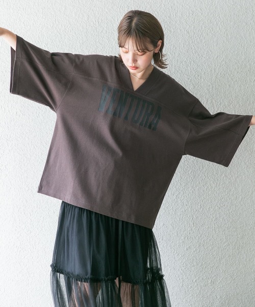 【フロントロゴが存在感を放つ、楽な着心地が嬉しいフットボールTEE】 メンズライクなサイズ感でさらっと着るだけでサマになる、フットボールTEE。フロントロゴはアメリカ・カリフォルニア州の町名を採用。しっかりとした天竺素材を使用し透け感もなく、首回りをすっきりと見せる程良いVネック仕様も◎カジュアルアイテム~女性らしいスタイリングまで幅広くマッチします。 COORDINATE チュニック丈トップスなので女性らしいアイテムとも相性抜群。定番のデニムやキャップを合わせた王道カジュアルコーデにもぴったり。 【2024 Spring/Summer】【24SS】 ※この商品は、特殊プリント加工をしています。加工は特性上永久的なものではなく、ご使用につれプリント表面の光沢感が減少し、ひび割れ・脱落などが生じます。プリント表面は、摩擦で擦られたりすることによって徐々に薄くなり、本体素材が見えることがあります。 ※この商品は、摩擦や汗、雨などの使用条件等により、色落ちや他の物への色移りの可能性がございますのでご注意ください。 ※その他お取り扱いに関しましては、商品に付属のアテンションタグをご覧ください。 ※商品画像は、光の当たり具合やパソコンなどの閲覧環境により、実際の色味と異なって見える場合がございます。予めご了承ください。 ※商品の色味の目安は、商品単体の画像をご参照ください。 ▼お気に入り登録のおすすめ▼ お気に入り登録商品は、マイページにて現在の価格情報や在庫状況の確認が可能です。 お買い物リストの管理に是非ご利用下さい。 素材感 透け感 : なし 伸縮性 : あり 裏地 : なし 光沢 : なし ポケット : なし One