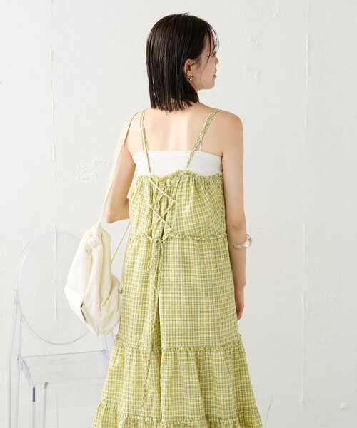 ふわっと広がるティアードデザインが女性らしいキャミワンピースが登場! 商品ポイント ・たっぷりのティアードがトレンドライクな印象に◎ ・デイリーにはもちろん、ちょっとしたお出掛けにも映えるアイテムです! ・裾は余裕を持たせたサイズ感ながら、落ち感もあるのでボリューム感を気にせず着ていただけます! ・華奢な肩紐が顔回りを明るい印象に◎ スタイリングポイント ・華やかなデザインなので、一枚で決まるアイテムです! ・キャミソールやタンクトップに重ねたヘルシーな着こなしもおすすめ◎ ・カジュアルなスタイリングが好きな方はTシャツ合わせでカジュアルガーリーなスタイリングも可愛いです! ・足元はサンダルで抜け感をプラスして◎ ----------------------------------------------------- 伸縮性:なし 光沢感:なし 生地の厚さ:うすめ ------------------------------------------------------ 商品のお気に入り登録➡ お気に入りアイテムの値下げ・再入荷・在庫1点などの通知を受け取ることができます。 ブランドのお気に入り登録➡ 新商品や再入荷、セール、クーポン配布などお得な情報を受け取ることができます。 ※サイト上のカラー名と、お届け商品に記載されているカラー名が異なる場合がございます。 ※商品の色味は、撮影場所や光のあたり具合などにより色味が違って見える場合が御座います 。 また、お客様のお使いのPCのモニター環境などにより色味が違って見える場合が御座います。予めご了承の上ご注文下さい。 ※ご注文いただいた予約商品のお届け時期の確認は、注文履歴ページより行えます。 ------------------------------------------------------