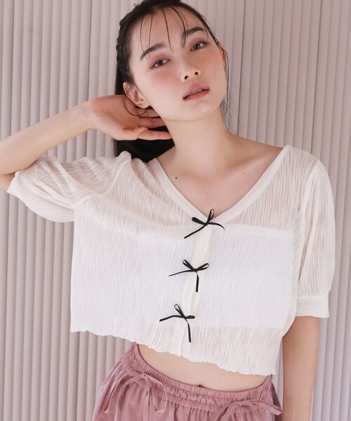 ~NICECLAUP 2024 Summer Collection~夏にピッタリのシアーカーディガンシンプルながらもフロントのリボンが可愛らしさを演出してくれます。程よいボリューム感のある袖で華奢見えし、シアー素材なので夏でも涼しく快適に着られます。メインでトップスとして使うのはもちろん羽織としても◎この時期に使いやすいおすすめアイテムです。■オススメスタイリングノースリーブのワンピースやビスチェの羽織として着るのがオススメ。広がりのあるスカートやデニムなど、どのボトムスとも相性がいいのでシーン関係なくデイリー使いできます。羽織としてはもちろん、トップスとしても着用可能なので長いシーズン着用可能です。-------------裏地:なし伸縮性:あり生地の厚さ:普通生地の重さ:普通洗濯 :手洗い-------------【ニットアイテムのお取り扱いのご注意】※ニットアイテムは、素材特性上以下の点にご注意下さい。●この製品は素材の特性上、着用やクリーニングにより、毛羽立ちや毛玉が発生することがあります。1、1日着用した際は、2.3日休ませるなどしてご使用ください。2、毛玉が出来てしまった場合は、毛玉取り器、又はハサミで丁寧にカットして取り除いてください。●この製品はデザイン性、風合いを重視し編みたてたニット製品です。着用により若干の伸びが生じますのでご了承お願いします。又、保存時のハンガーのご使用は避け下さい。※サンプルでの撮影のため、実際のものと仕様や色が異なる場合があります。※室内、室外での撮影のため実際より明るく映っていたり、暗く映っていたりする場合がございます。※品質表示を必ずご確認下さい。▼お気に入り登録のおすすめ【気になるアイテムを登録】ハートをクリックしてお気に入りに登録すると完売カラーの再入荷やラスト1点の通知、セールの通知を受けとることができます。【ブランドを登録】新作入荷や再入荷、セール通知など、いち早くブランドの情報を受けとることができます。是非ご利用下さい♪