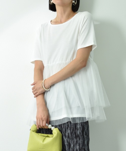 裾のチュールレイヤードが魅力 今季トレンドのバレエコアスタイルが完成 カット素材で程よいゆったりしたサイズ感が今っぽさを与えてくれる1枚。裾のチュールデザインが目を間を惹くプルオーバーです。デイリーにも着まわしやすく、幅広いスタイリングが楽しめる1着になっています。気になる腰回りをふんわり優しくカバーしてくれ、Tシャツ感覚で着まわせるのも嬉しいポイントです。 コーディネイトに悩まないベーシックなオフホワイトとブラックをご用意いたしました。いつものスタイルにプラスし易いお勧めなアイテムです。 ■取扱い ご自宅で洗えるイージーケア(手洗い)ができます。 *バレエコア=バレエからインスピレーションを受け、上品で可憐なイメージとデイリーになじむラフさを兼ね備えているスタイル INTERPLANET/actuel(インタープラネット/アクチュエル) ■concept いつだって私らしく、私自身のスタイルが決まる。。。時代や年齢に媚びない『らしさ』を纏って生きる女性へ。旬なベーシックと抜け感のあるカジュアルをMIX。そんな大人カジュアルコーデを提案します。 ■お気に入りの登録について ショップ・ブランドのお気に入り登録でクーポンやタイムセールの通知などお得な情報を受け取ることができます♪また、気になるアイテムのお気に入り登録でセールや再入荷の通知など受け取ることができます。