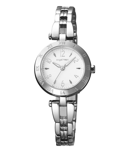 AngelHeart 『女性に毎日笑顔でハッピーに過ごしてほしい』という願いを込めて、2004年に誕生。 ブランドミューズは女優の橋本環奈さん。2019年春夏からは「はじまりのそばに。」をブランドコンセプトに進学や入社、新たな1日の始まりなど、人生の大切な節目を迎える女性に寄り添うブランドとして展開しています。クリスタルや天然パール、ピンクゴールドなどをさりげなく施しているのでファッションとしても楽しめるアクセサリーウォッチです。その日の気分やコーディネートに合わせて、カジュアル、フォーマル、ビジネスなど様々なシーンでお楽しみください。 Innocent Time/イノセントタイム フルアラビア数字のインデックスに加え、文字盤に刻まれた1秒ごとの目盛りによって視認性を高めました。文字盤の天然パールは光の当たり具合で七色に輝き、様々な表情を楽しめます。3位置・リューズにさりげなく輝くクリスタルもポイントに。 --------------------------------------------------------- お気に入り登録のオススメ ▼商品のお気に入り登録 再入荷、残り1点、セールなどの通知を受け取ることができます。 ▼ブランドのお気に入り登録 新商品や再入荷など、いち早くブランドの情報を受け取ることができます。 --------------------------------------------------------- Spec 文字盤カラー:ホワイト 防水機能:3気圧防水 駆動方式:ソーラー電池 ガラス素材:ミネラルガラス サイズ:ケース縦:24.5mm×横:24.5㎜×厚さ:8.5mm 重さ40g 保証:保証年数1年(自然故障保証) 付属品:箱/取扱説明書/保証書
