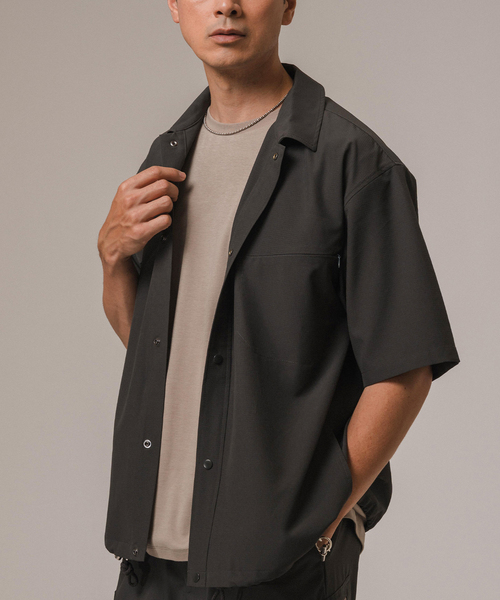 ■デザイン3つの機能的なポケットに、裾を絞って色々な着方を楽しめる、前開きできるシャツタイプなので、様々なシーンでご着用いただけます。付属にはエディフィスらしく、シルバーパーツをチョイス。トレンドのゴープコア要素を取り入れだデザインでまとめ、着脱もスナップ仕様にしストレスフリーな1着に仕上がりました。■素材シワのつきにくいイージーケア性にすぐれたマイクロリップストップに撥水加工を施したユーティリティ素材を使用。同素材で以下のパッケージにて展開しています。ご覧くださいませ。商品番号:24051300618020商品名:テックエアー ウーブン Tシャツ商品番号:24051300619020商品名:テックエアー ウーブン コーチシャツ商品番号:24030300624020商品名:テックエアー ウーブン ジョグパンツ商品番号:24031300610020商品名:テックエアー ウーブン ショーツ**********************透け感:なし裏地:なし伸縮性:あり光沢感:なし生地の厚さ:普通**********************【スタッフ着用コメント】《スタッフA》身長:178cm/体重:62kg/普段サイズ:L/着用サイズ:Lサイズ感:ゆとりのあるリラックスフィット素材感:ドライな質感でストレッチ性のある素材着心地:軽い着心地で通気性も感じるので、これからの時期は特に快適そうです**********************【ご注意】※照明の関係により、実際よりも色味が違って見える場合があります。またパソコン・スマートフォンなどの環境により、若干製品と画像のカラーが異なる場合もございます。※商品の色味は、商品アップ画像をご参照ください。本体:手洗い可能