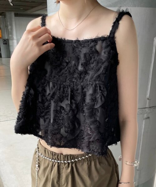 表面感がときめくプラス1枚で主役になってくれるキャミソールが登場! 商品コメント ・立体感あるフェザー生地がオシャレな1枚。 ・細めの肩紐が華奢見えも叶えてくれます◎ ・裾にかけて広がるデザインがお腹周りをカバーしてくれるのも嬉しいポイント! ・切り替わり位置が高いので脚長効果も! スタイリングポイント ・1枚でも主役になってくれるアイテムです! ・シアーのTシャツ合わせで肌見せも軽減させる着こなしも◎ ※洗濯、取り扱い 洗濯:40度限度 手洗い アイロン:低温110℃まで スチームなし(あて布使用) タンブル乾燥:不可 ----------------------------------------------------- 裏地:なし 伸縮性:あり 光沢感:なし 生地の厚さ:うすめ ------------------------------------------------------ 商品のお気に入り登録➡ お気に入りアイテムの値下げ・再入荷・在庫1点などの通知を受け取ることができます。 ブランドのお気に入り登録➡ 新商品や再入荷、セール、クーポン配布などお得な情報を受け取ることができます。 ※サイト上のカラー名と、お届け商品に記載されているカラー名が異なる場合がございます。 ※商品の色味は、撮影場所や光のあたり具合などにより色味が違って見える場合が御座います 。 また、お客様のお使いのPCのモニター環境などにより色味が違って見える場合が御座います。予めご了承の上ご注文下さい。 ※ご注文いただいた予約商品のお届け時期の確認は、注文履歴ページより行えます。 ------------------------------------------------------ 手洗い可/ウェットクリーニング(非常に弱い処理)可/ドライクリーニング不可 綿100%