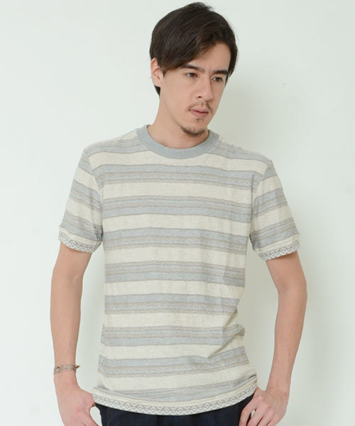 ジャカード素材を使用した半袖カットソー。生地の裏面を敢えて表で使用することで独特な表情になっています。衿には編み立てのリブをつけることでデザインアクセントになっています。 柄を編み出したジャカード素材を使用。レーヨン混の程よい柔らかさと落ち感が特徴です。 <サイズ展開変更のお知らせ> この15春夏シーズンよりサイズ展開を変更致しました。 表記に関してもM,L,AL,BLからS,M,L,XL,XXLに変更しております。 従来のシルエットはそのままに、より幅広いお客様にも着て頂けるよう全体的にサイズ感を上げております。 さらに着心地も良くなっております。 今までHAMNETTでご購入頂いておりましたお客様はもちろんのこと、サイズで悩まれていた方にも喜んで頂けるものになっております。 ご不明点がございましたらお気軽にお問い合わせ下さい。 KATHARINE HAMNETT LONDON キャサリン ハムネット ロンドン クラシックなものをモチーフに時にシンプルに、時にゴージャスにスレンダーでスマートに表現するのが彼女流のデザインです。 作品においては「溢れ出る知性を抑えるための、ストイックな服やワイルドな服づくり」という一貫したポリシーでデザインを行っています。 トラディショナルなUKのイメージにキャサリンの革新的な完成をミックス。 クラシックなUKのスタイルとキャサリン自身のメッセージ性・社会性のある独自のデザインが見事に調和したキャサリンハムネットを代表するラインです。